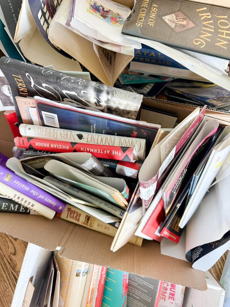 I start by visiting thrift stores around town that sell books inexpensively- usually in the $2–$5 range. And yes, I go to multiple stores. This isn’t a one-stop situation!